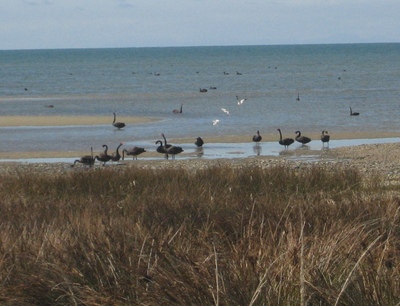 schwarze Schwäne in der goldenen Bucht