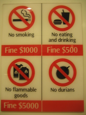 No Durian??? Durians sind Frücchte, die so schrecklich stinken, dass ihr Transport in der Metro verboten ist,