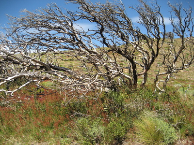 dürrer Baum und rotes Gras
