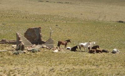 Ruine mit Pferden