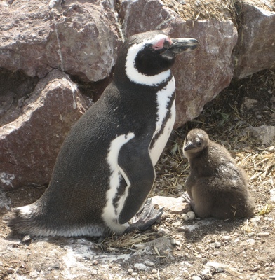 Pinguin mit einem Küken