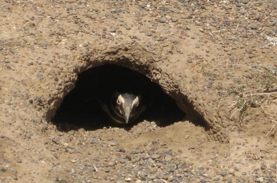 Pinguin in seiner Erdhöhle