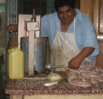 die Weihnachtswürste werden gefüllt
