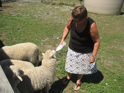 Elfi beim Lämmer füttern